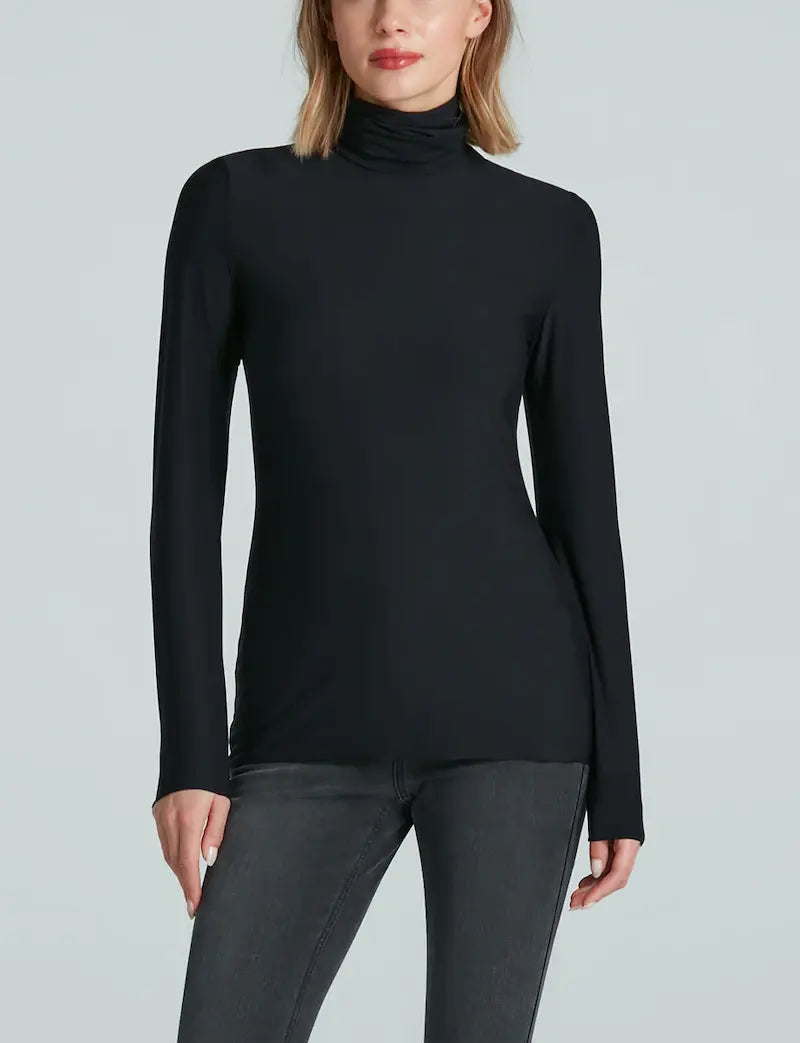 Experience the luxurious comfort and stretch of the Commando Butter™ Long Sleeve Turtleneck. Designed with raw-cut edges for a sleek, second-skin fit, this top will quickly become a staple in your wardrobe. Made with high-quality Austrian fabric, this turtleneck offers four-way stretch, exceptional recovery, and resistance to pilling. Plus, it's ultra soft and breathable for all-day comfort. Machine washable for convenience.