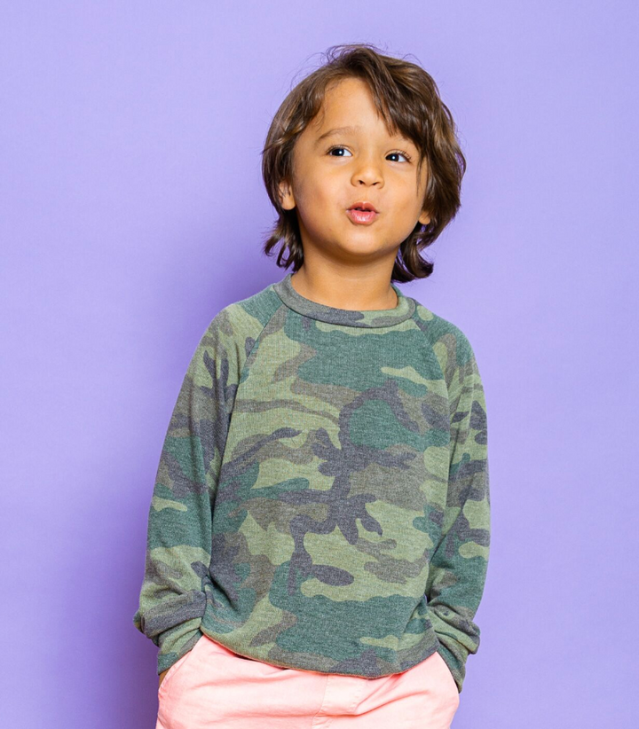 The iconic Joah Love Alfie Sweatshirt is crafted with their signature ultra-soft, faux cashmere. Choose from 3 unique patterns to give your little one the best! Faux cashmere is a brushed knit with a luxurious feel and subtle vintage look. Pilling is normal and adds to the look – no need to worry. Wash cold, inside out, on gentle cycle and line dry or tumble dry low. 60% Polyester / 32% Rayon / 8% Spandex. Made with love in the USA!