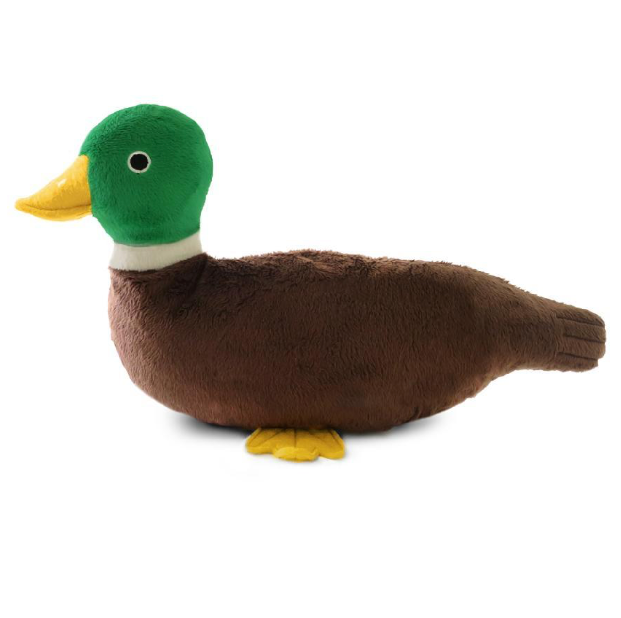 Treat your pup to a cozy cuddle buddy: our Decoy Duck plush toy, crafted of lined crushed veloba with duoble-locked seams. It even features a two-way squeaker! This plush toy comes in two sizes -- small (9"w x 5"h) and large (13.5"w x 7"h).