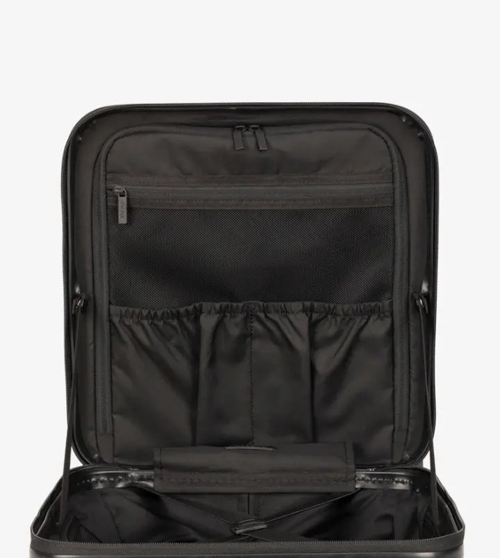 Sous-emballage ou suremballage ? Peu importe avec ce mini bagage à main Black Hue ! Il est parfait lorsque votre valise principale a trop peu de place ou lorsque vous souhaitez la garder légère. Mesurant 16" x 14" x 8", il se glissera sous la plupart* des sièges d'avion. Bon voyage ! Coque en polycarbonate robuste, serrure approuvée par la TSA, séparateur intérieur à fermeture éclair et plusieurs poches.