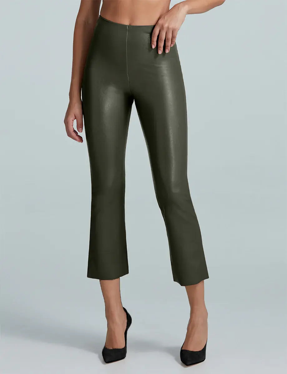 Les leggings évasés courts en simili cuir de Commando sont le mélange parfait de style et de confort. Notre ceinture de lissage interne emblématique est conçue avec un tissu raffermissant qui ne s'affaisse pas et ne s'affaisse pas avec le temps. La construction extensible dans quatre directions assure un ajustement sans effort et l'ourlet brut dégage une ambiance actuelle et avant-gardiste. De plus, vous pouvez éviter les tracas du nettoyage car ces leggings taille haute sont lavables en machine. Quel que soit votre look, ils épouseront parfaitement vos courbes ; alors faites-nous confiance, ils valent le détour !