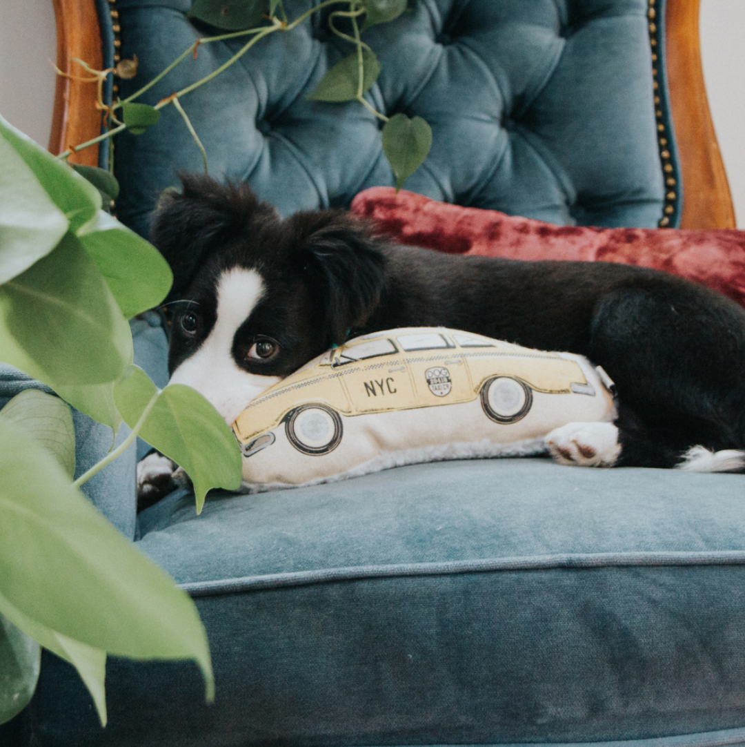 Klaxonnez pour Harry ! Notre nouveau jouet Taxicab est parfait pour les chiots dans un état d'esprit new-yorkais. Avec les détails classiques du taxi jaune sur une toile 100 % coton, ce véhicule préfère les grincements aux klaxons. Dos en polaire berbère et double couture pour renforcer les coutures.