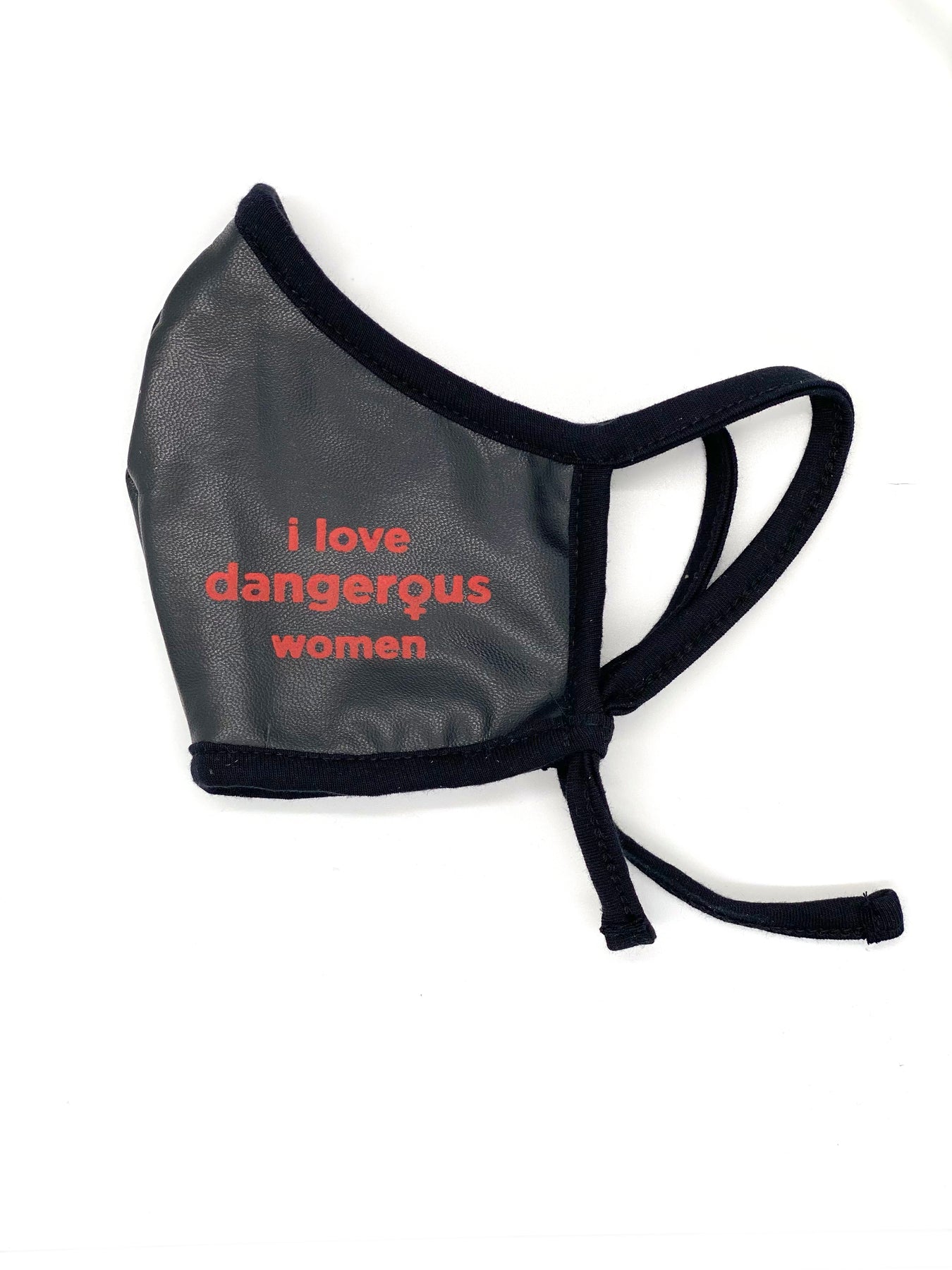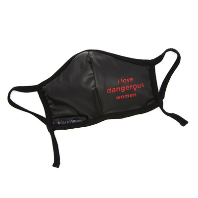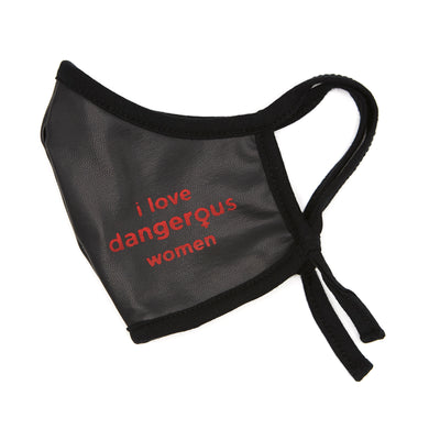 "I Love Dangerous Women" Adult Black Vegan Leather Face Mask