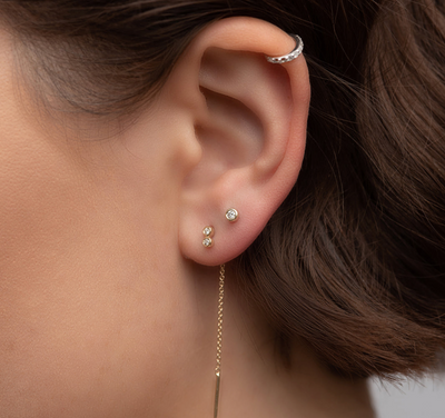 You'll sail through the day in style with these sparkly earrings! Crafted with 14k gold and two bezel-bedazzled diamonds, these lightweight babes look effortless and can even be custom-ordered in white or rose gold. Can you hear the cha-ching? It's the sound of 0.06 cts of diamonds calling your name. (Thread them through your earlobes for a 1.8" sparkle-tastic extravaganza!)