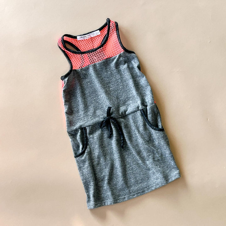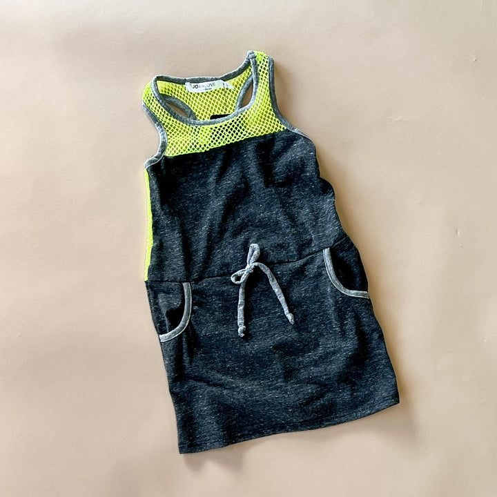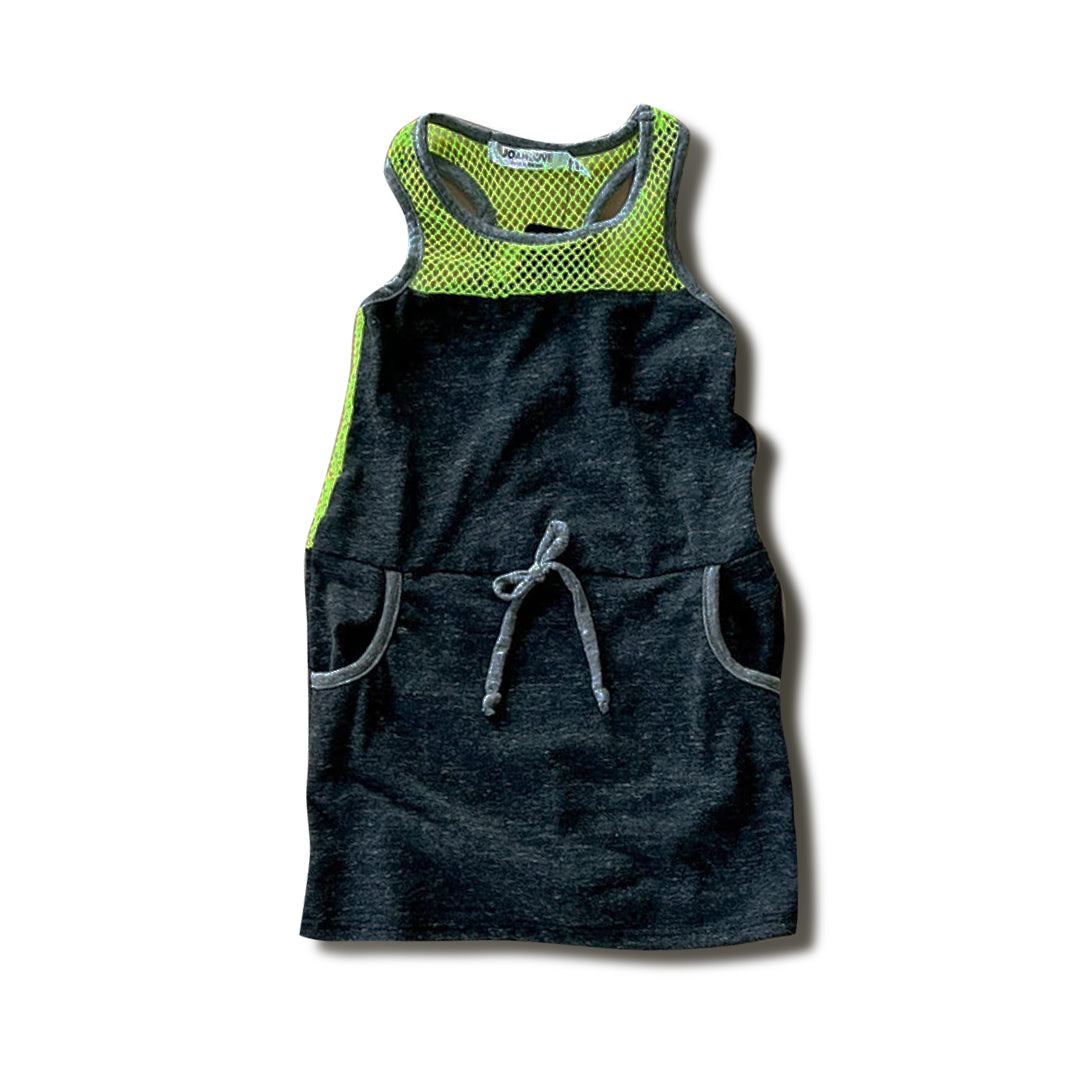 Enhance your kid's wardrobe with the Joah Love Tennis Dress! Its neon detailing is sure to make a stylish statement. Crafted to last, this preshrunk dress is machine washable and tumble dryable for easy maintenance. Proudly made in the USA.