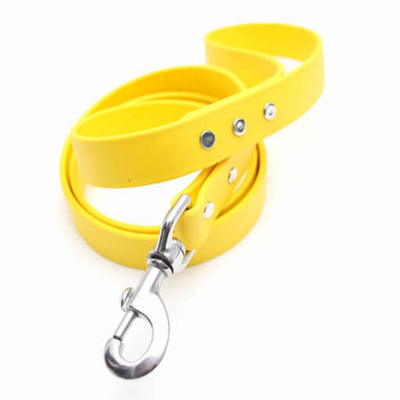 Bright and bold in Limon Yellow, this waterproof dog leash is a game-changer! Made from heavyweight Biothane with a soft grip, it’s stain resistant, stink proof, and completely vegan-friendly. Perfect for pups who love mud, water, or sports—it cleans up with just a quick rinse. Reinforced with PVC-coated nylon, it’s tough enough for strong pullers and won’t fray like typical leashes. Featuring durable brass or stainless steel hardware, this leash resists weather, odors, and dirt, making every adventure mess-free and fun!